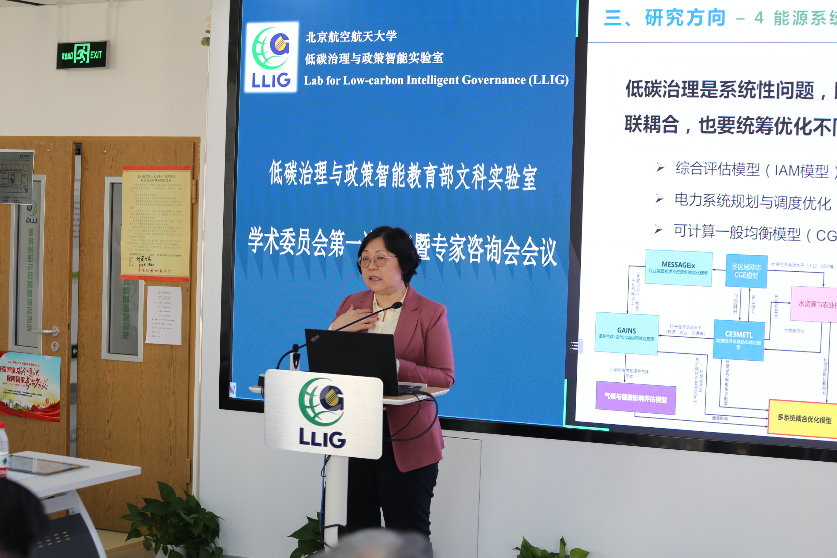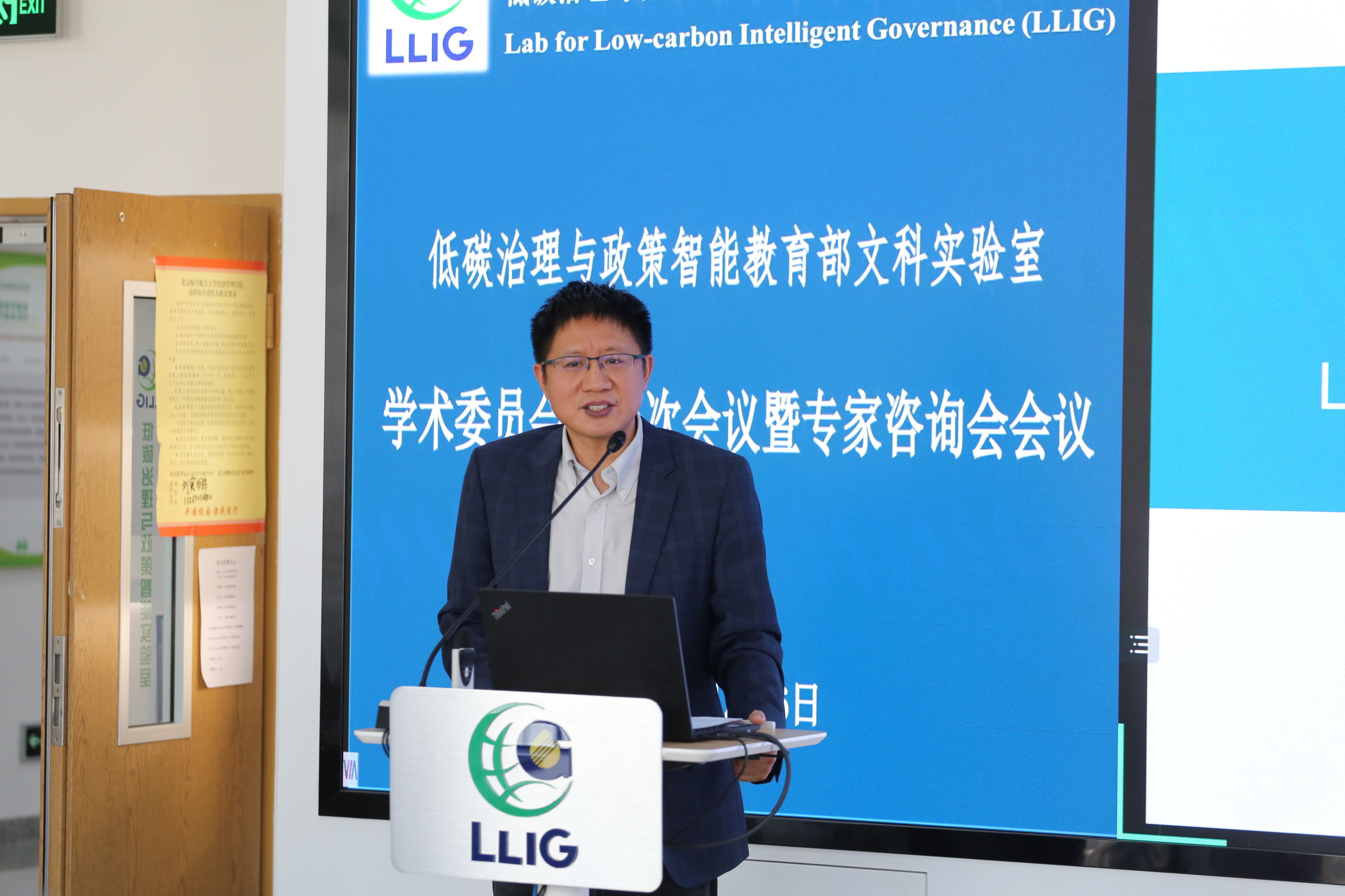 北航副校长黄海军教授在会议上热情致辞,对各位嘉宾对北航及实验室各项工作的帮助与支持表达了深切的感谢。他认为大学应该在低碳发展中起到引领作用,对低碳治理与政策智能实验室在这方面的贡献和未来发展给予了肯定和鼓励。