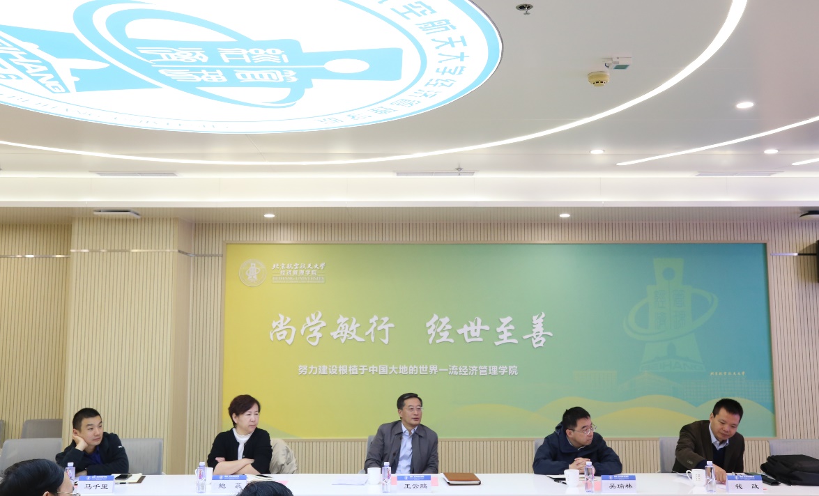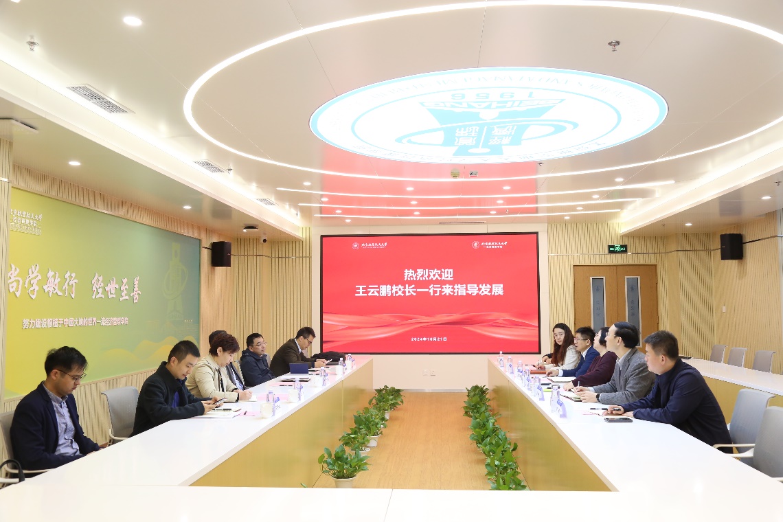 10月21日上午,王云鹏校长一行来到太阳成集团tyc33455cc开展调研座谈。计划财务部部长吴瑞林、人力资源部部长鲍蕊、教务部部长钱政、党政办公室副主任马千里等一同参加调研。太阳成集团tyc33455cc院长范英、党委书记郑海涛及学院其他院领导、人事秘书、教务秘书等参加会议,会议由郑海涛书记主持。