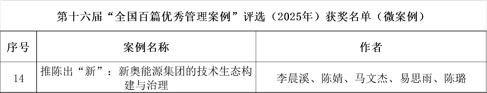 在全国工商管理专业学位研究生教育指导委员会的指导下,中国管理案例共享中心主办的第十六届“全国百篇优秀管理案例”评选工作结束,于9月10日公布获奖名单。经过同行匿名函审和专家委员会会议评审两轮评审,从195所院校的1812篇(其中重点项目13项49篇、一般项目1207篇、微案例专项328篇、国有企业管理专项228篇)投稿中评选出231篇获奖案例。其中:8项重点项目的29篇案例入选第十六届“全国百篇优秀管理案例”(重点案例),136篇案例入选第十六届“全国百篇优秀管理案例”(一般项目),35篇案例入选第十六届“全国百篇优秀管理案例”(微案例),31篇案例入选第十六届“全国百篇优秀管理案例”(国有企业管理专项)。