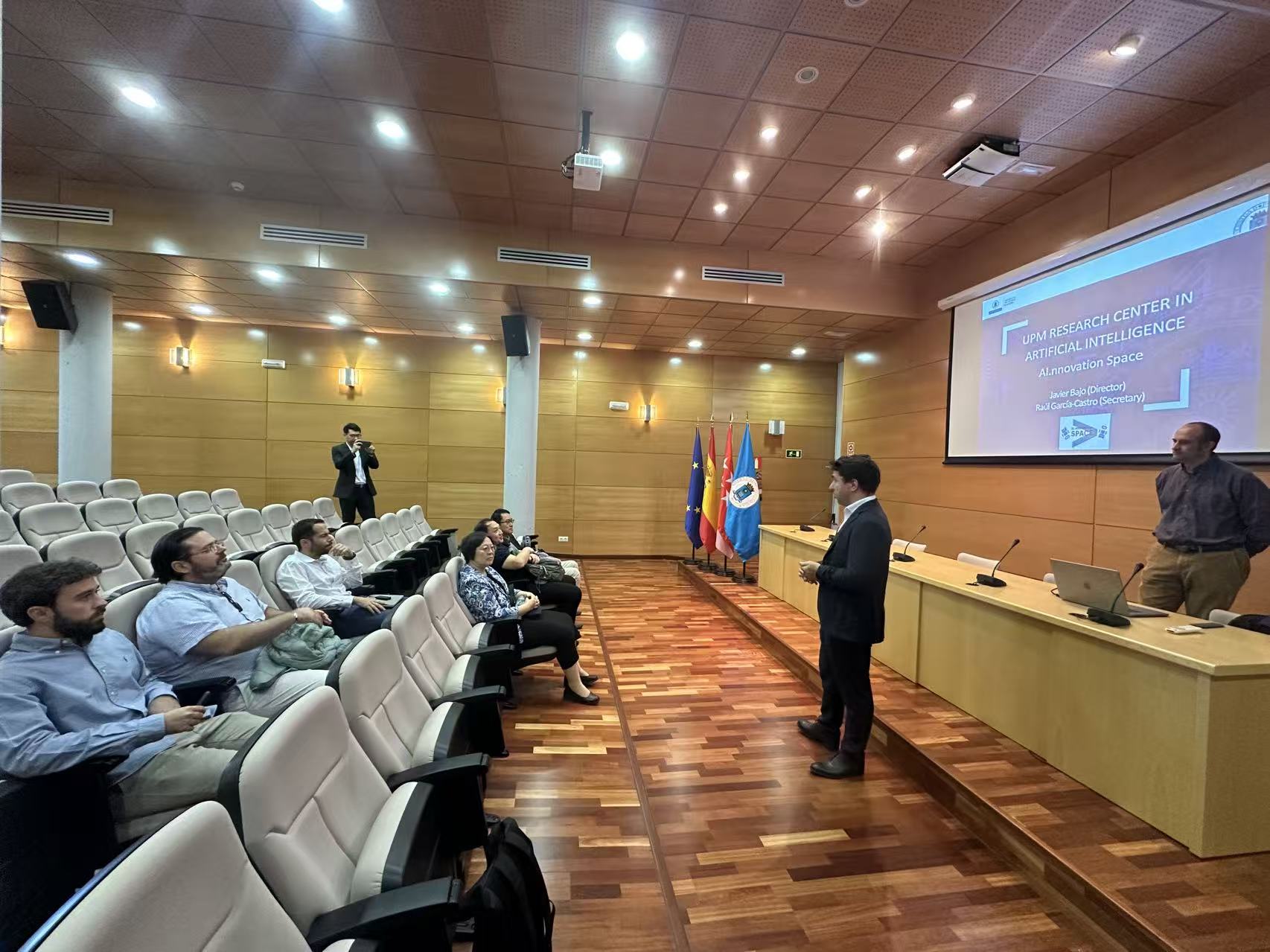 代表团与马德里理工大学计算机学院组织工程、工商管理和统计系教师及马德里理工大学业界导师围绕数字创新、金融科技、大数据管理举办双边学术会谈。双方介绍了各学科系所的科研领域与成果。双方围绕数字创新、金融科技、大数据管理讨论了合作科研的可能性,并与对方数位教授建立了学术联系。