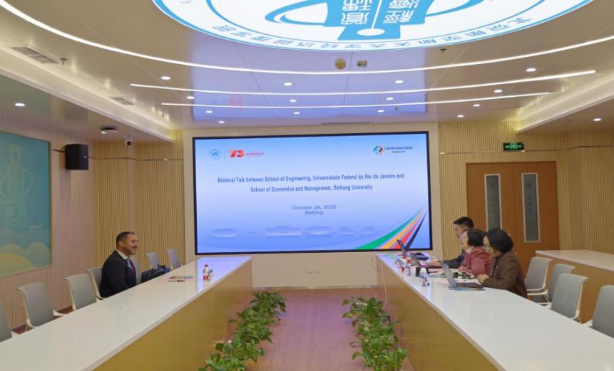 院长范英教授、管理科学与工程系孙晓蕾教授、学院外事助理郝壮副教授与里约热内卢联邦大学理工学院总监Thiago Gomes de Lima教授举行会谈