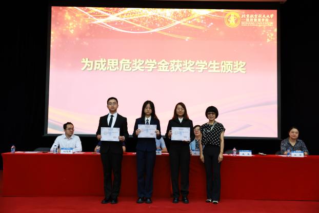 学院邀请到成思危教授的女儿、成思危基金理事长成卓女士亲临现场。成卓女士宣读了2025年度成思危奖学金获奖名单,并为获奖同学颁奖。在随后的讲话中,她代表基金会向所有获奖同学提出期望,希望同学们能继承成思危先生“经世致用”的家国情怀,“敢为人先”的创新锐气和“知行合一”的实干精神,鼓励所有北航学子从成思危先生的精神中汲取力量,不负时代、不负韶华,成就属于自己的辉煌未来。