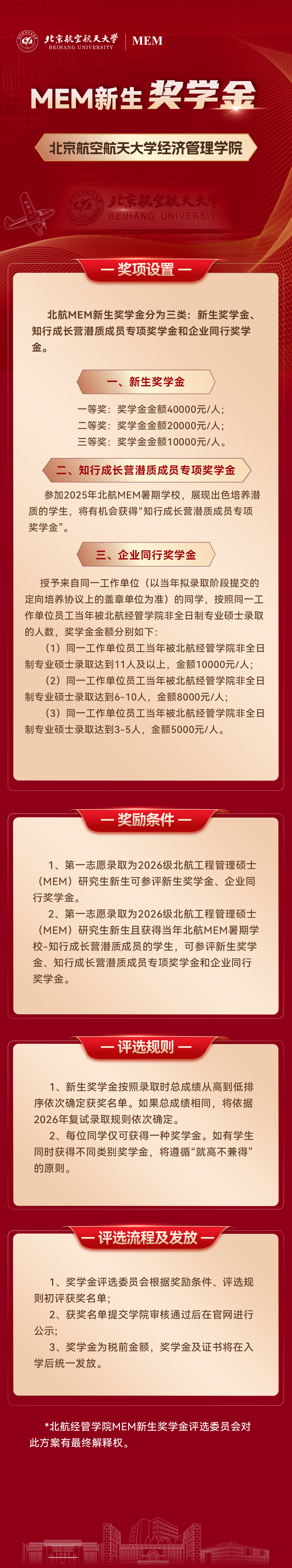 太阳成集团tyc33455cc2026级MEM新生奖学金发布